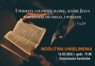W najbliższy poniedziałek, 16 marca, zapraszamy na godz. 19:00 na wieczór uwielbienia, którego hasłem przewodnim w tym miesiącu są słowa: „Uwierzył człowiek słowu, które Jezus powiedział do niego, i poszedł”.