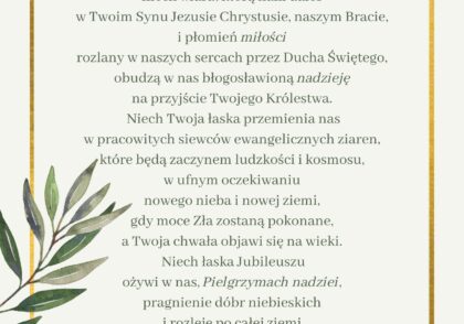 W związku z jubileuszem 25-lecia konsekracji naszego kościoła, zachęcamy do modlitwy za naszą parafię słowami modlitwy, którą zaproponował pp. Franciszek.